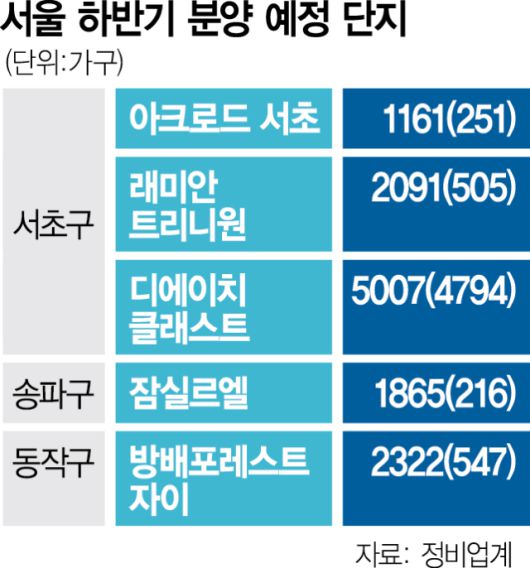 이에 당장 올해 7월 이후 하반기에 예정된 아파트 분양 시장에 불똥이 튈 것으로 예상된다. 서울 송파구 신천동 ‘잠실르엘’은 미성·크로바를 재건축한 단지로 분양가가 확정되지는 않았지만 시세 차익이 10억 원이 넘어설 것으로 예상된다. 하지만 이번 대출 규제로 대출 한도가 줄어들며 경쟁률이 낮아질 가능성이 커졌다. 정비 업계에 따르면 이 단지 예상 분양가는 전용면적 3.3㎡당 6000만 원 안팎이다. 지난해 10월 분양한 인근 ‘잠실 래미안아이파크’ 분양가가 3.3㎡당 5409만 원에도 100% 계약됐기 때문이다. 다만 성동구 성수동 장미아파트를 재건축한 ‘오티에르 포레’와 영등포구 영등포동 ‘리버센트 푸르지오 위브’는 대책 시행일 전 입주자모집공고가 나오면서 가까스로 대출 한도 규제를 피하게 됐다. 양지영 신한투자증권 자산관리컨설팅부 수석은 “분양 시장 수요자 입장에서는 그렇지 않아도 분양가가 오르고 있는 상황에서 대출이 막히면서 자금 조달 부담이 커지게 됐다”며 “수요 위축으로 침체된 건설 경기 부양에도 지장을 초래할 것”이라고 우려했다. 이어 “건설 경기 부양을 위해서는 대출 규제를 적용하더라도 지역별 차별화가 필요하다”고 설명했다.