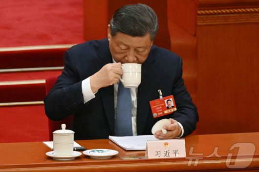 시진핑 중국 국가주석이 8일(현지시간) 베이징 인민대회당에서 열린 전국인민대표대회(전인대) 둘째 날 회의에 참석해 차를 마시고 있다. 2025.03.08 ⓒ AFP=뉴스1 ⓒ News1 우동명 기자 |