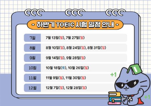 한국TOEIC위원회 관계자는 "여름방학은 하반기 채용 시즌을 본격적으로 준비하는 시기로, TOEIC 시험에 대한 관심과 응시 수요가 특히 높아지는 시기"라며, "토익 성적은 취업은 물론 졸업인증, 학점인정과 같은 다양한 분야에서 활용되고 있는 만큼, 하반기 시험 일정을 적극 활용해 원하는 목적을 달성하길 바란다"고 말했다.