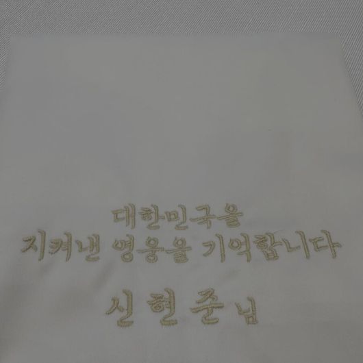 신현준은 '대한민국을 지켜낸 영웅을 기억합니다. 신현준님'이라는 자수 문구도 함께 공개했는데, 국가유공자 유족인 신현준이 청와대 초청을 받은 것으로 보인다.