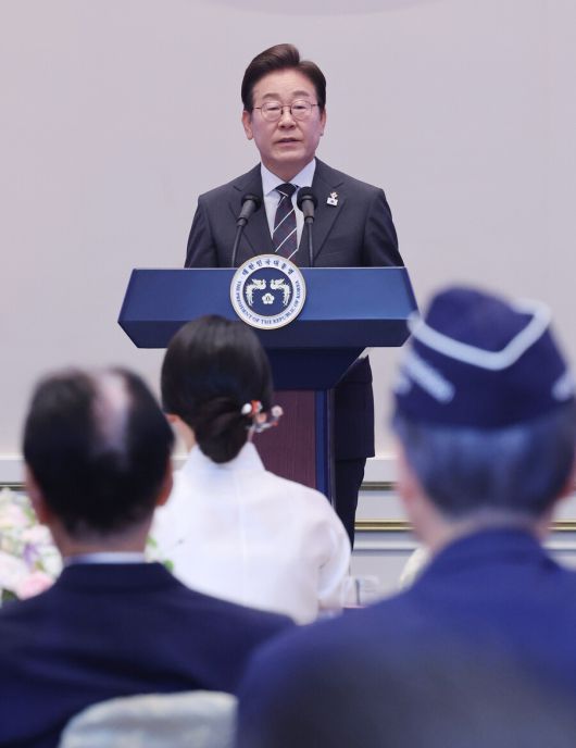 이재명 대통령은 이날 청와대 영빈관에서 '호국 보훈의 달, 대통령의 초대' 행사를 열고 국가유공자들을 초청해 함께하는 시간을 가졌다.
