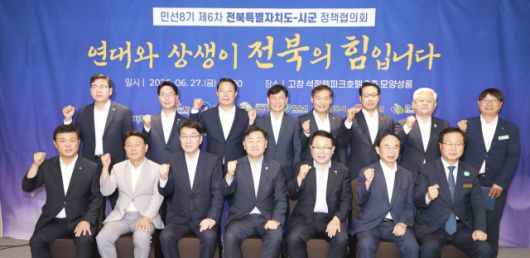 전북도는 27일 고창 웰파크호텔에서 민선 8기 제6차 도-시군 정책협의회를 열고, 김관영 도지사와 정헌율 시장·군수협의회장(익산시장)을 비롯한 14개 시군 단체장과 함께 도정 현안을 공유하고 정책 공조 방안을 논의했다.