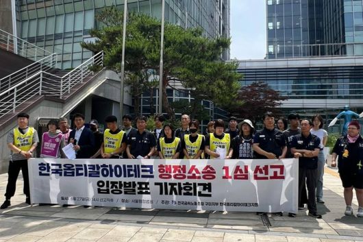한국옵티칼하이테크 해고 노동자들이 부당해고 사실을 인정해 달라며 제기한 행정소송이 끝내 법원에서 기각됐다.