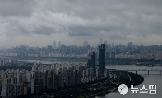 장마전선의 영향으로 전국이 흐리고 많은 양의 비가 내리고 있는 10일 서울 여의도 63스퀘어에서 내려다본 서울하늘에 먹구름이 드리워져 있다. /김학선 기자 yooksa@ |
