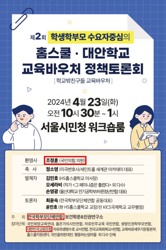 조정훈 의원이 '교육 바우처' 정책을 도입하기 위해 리박스쿨 협력 단체인 대한민국교원조합(대한교조)과 전국학부모단체연합(전학연)과 교류한 사실도 확인됐다. 지난해 4월, 조정훈 의원은 두 단체가 개최한 '홈스쿨 희망 학부모와 대안학교 교육바우처 정책토론회'에 환영사를 보냈다.