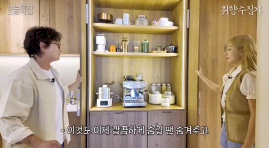 주방 한 쪽에는 장 안에는 숨겨진 홈 카페가 등장해 놀라움을 안겼다. 임성빈은 "숨기고 싶을 때 숨겨주고 필요할 때 열면 된다"라고 설명했다.