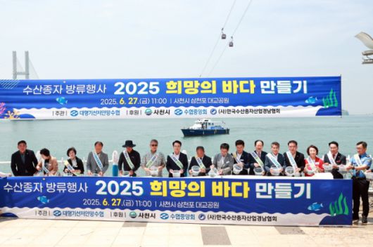 경남 사천시는 27일 삼천포대교공원 일원에서 '2025년 희망의 바다만들기 수산종자 방류행사'를 가졌다고 밝혔다.