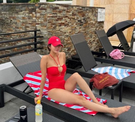 공개된 사진 레드 수영복을 입은 한그루의 모습이 담겼다. 늘씬한 볼륨 몸매가 눈길을 끈다.