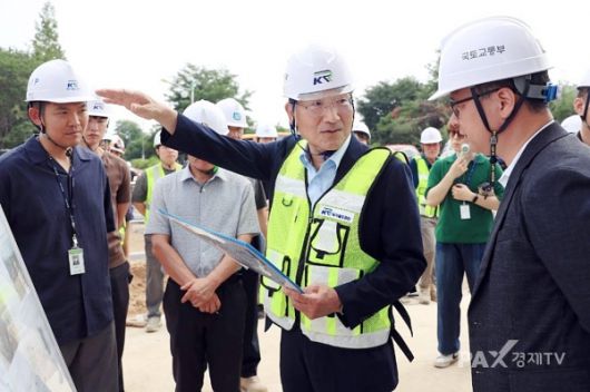 [대전=팍스경제TV] 국가철도공단 이성해 이사장은 27일 GTX-A 구성역 서측 5번 출입구 공사 현장을 찾아 30일 사용개시를 위한 막바지 준비 현황점검에 나섰다. 이 이사장은 "구성역은 그동안 수인분당선 1~3번 출입구와 GTX-A 4번 출입구만 운영돼 역 접근이 어려운 서측 지역 이용객들이 불편을 겪었다"며 "지역 주민들의 접근성과 보행 편의 향상을 위해 마지막까지 현장관리에 심혈을 기울여 달라"고 당부했다. 사진은 27일 이성해 국가철도공단 이사장(앞 오른쪽 두 번째)이 GTX-A 구성역 5번 출입구 현장 점검을 하고 있다. [사진제공=국가철도공단]