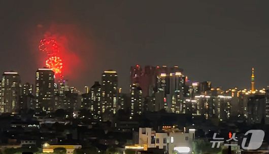 (대구=뉴스1) 공정식 기자 = 대구 밤하늘에 정체불명의 불꽃놀이가 시민들의 궁금증을 자아냈다.