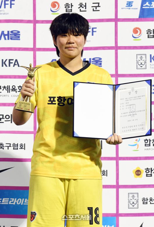 경북 포항여전고 우수민이 27일 경남 합천에서 열린 ‘2025 스포츠케이션 명품도시 합천에서 펼쳐지는 제33회 여왕기 전국여자축구대회’ 고등부 시상식에서 GK상을 수상한 뒤 기념촬영을 하고 있다. 2025. 6. 27.합천 | 박진업 기자 upandup@sportsseoul.com [기사제보 news@sportsseoul.com] Copyright ⓒ 스포츠서울&sportsseoul.com