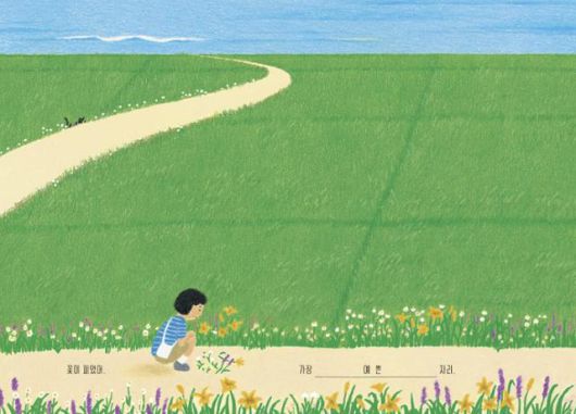설레고 두려운 마음으로 길을 걷던 아이는 길섶에서 예쁜 들꽃을 발견한다. 위즈덤하우스 제공 |