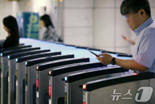 수도권 지하철 요금 인상을 하루 앞둔 27일 서울 지하철 2호선 시청역에서 승객들이 개찰구를 통과하고 있다. 28일 첫차부터 서울과 경기·인천 지하철 기본요금이 기존 1400원에서 1550원으로 150원 오른다. 2025.6.27/뉴스1 ⓒ News1 오대일 기자 |