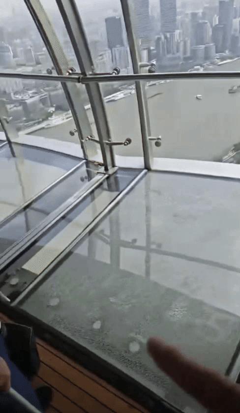 다완신문은 영상 속 장소가 동방명주 타워 두 번째 구체에 위치한 '360도 유리 전망대'로 추정된다고 밝혔다.
