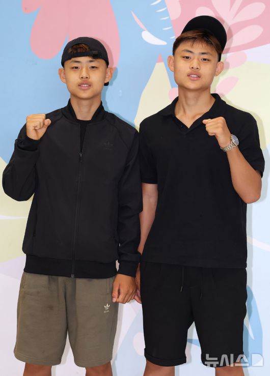 [인천공항=뉴시스] 이영환 기자 = FC 바르셀로나 유스팀에 입단한 쌍둥이 형제 이대한(왼쪽), 이민국이 지난 27일 오후 인천국제공항 제1여객터미널을 통해 귀국해 뉴시스와 인터뷰를 마친후 포즈를 취하고 있다. 2025.06.28. 20hwan@newsis.com |