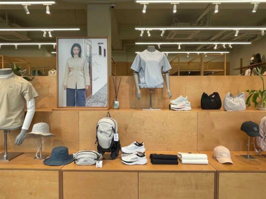 서울 서초구 청계산 원터골 등산로 입구에 위치한 네파 청계산 스토어 1층에 네파 상품들이 진열돼 있다. 사진=이정화 기자 |
