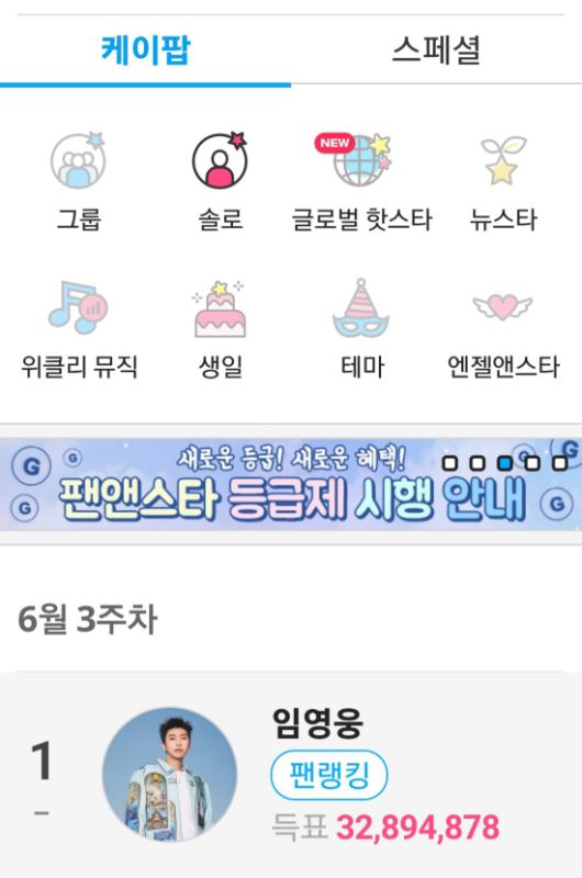 (엑스포츠뉴스 이정범 기자) 임영웅이 '팬앤스타' 6월 3주 차 솔로랭킹 1위에 올랐다.