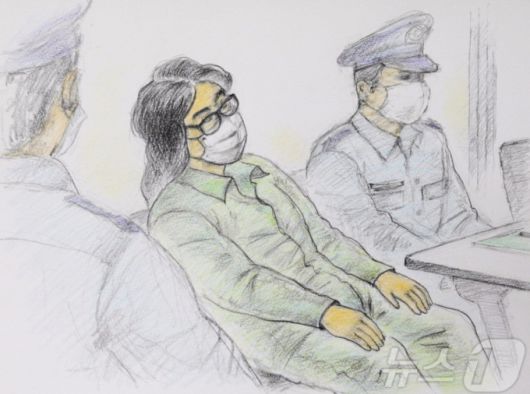 '트위터 살인범'으로 불리는 시라이시 다카히로의 재판 장면 드로잉/ AFP=뉴스1 |