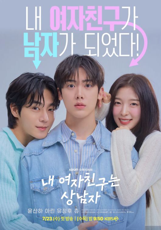 KBS2 새 수목드라마 ‘내 여자친구는 상남자’(극본 이해나, 연출 유관모, 제작 스튜디오N, 블러썸엔터테인먼트, 플레이그라운즈)는 인기 네이버웹툰 ‘내 여자친구는 상남자’(작가 맛스타)를 원작으로 한 작품으로 하루아침에 꽃미남이 되어버린 여자친구 김지은(아린)과 그런 여자친구를 포기할 수 없는 여친 바라기 박윤재(윤산하)가 펼치는 대환장 로맨스를 그린다.