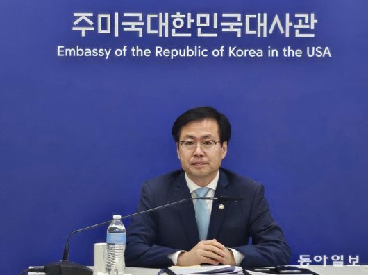 여한구 산업통상자원부 통상교섭본부장이 27일(현지 시간) 미국 워싱턴 주한미국대사관에서 진행된 특파원 간담회에서 발언하고 있다. 워싱턴=신진우 특파원 niceshin@donga.com |