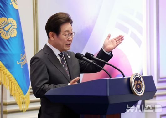 [서울=뉴시스] 최진석 기자 = 이재명 대통령이 27일 청와대 영빈관에서 열린 '호국보훈의 달, 대통령의 초대' 행사에서 인사말을 하고 있다. (대통령실통신사진기자단) 2025.06.27. myjs@newsis.com |