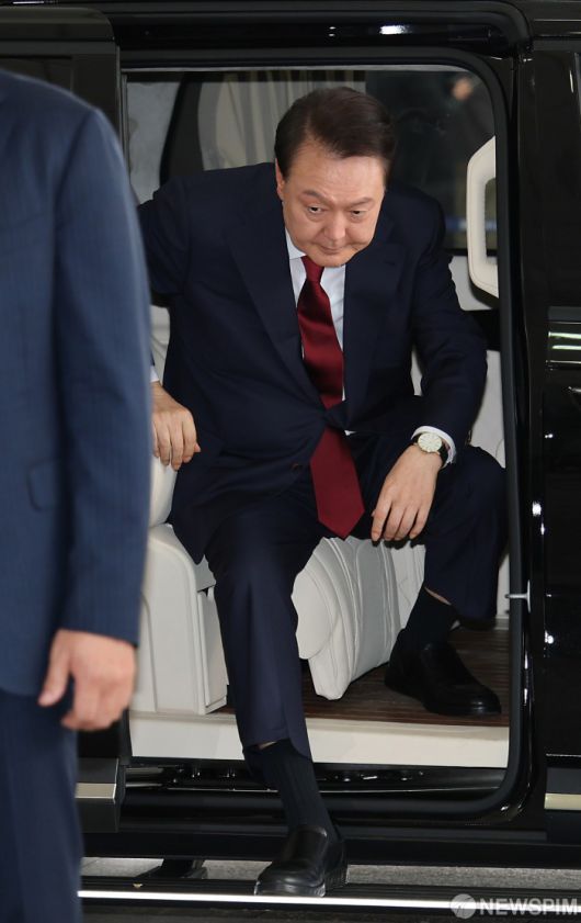 [서울=뉴스핌] 양윤모 기자 = 윤석열 전 대통령이 28일 오전 12·3 비상계엄과 관련한 내란·외환 사건을 수사하는 조은석 특별검사팀의 소환조사에 참석하기 위해 특검사무실인 서울고등검찰청에 출석하고 있다.이날 소환 조사에 윤 전 대통령 측에서는 김홍일·채명성·송진호 변호사가 동행했다. [공동취재] 2025.06.28 yym58@newspim.com