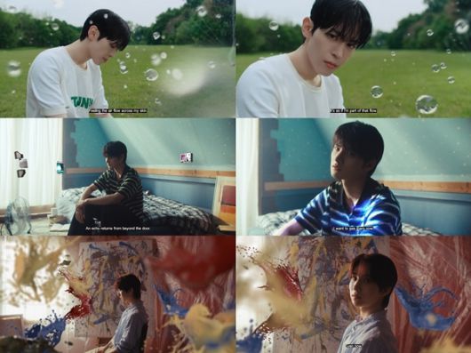 이번 영상에서는 잔디밭에 앉아 스프링클러 물줄기를 느끼는 현빈, 회전하는 전자기기 사이에 홀로 고립된 윤, 캔버스에 다채로운 색의 물감을 흩뿌리는 연우의 모습이 담겨 눈길을 끌었다.