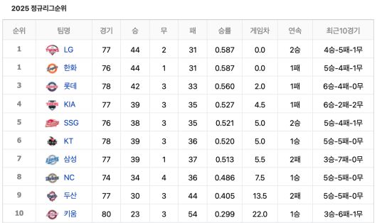 올해 KBO 리그는 역대급 혼전이다. 매일같이 순위가 바뀔 정도로 치열하다. 1위부터 8위까지 엎치락 뒤치락을 거듭하고 있다. 6위 'kt'와 1위 'LG'는 단 5게임 차.