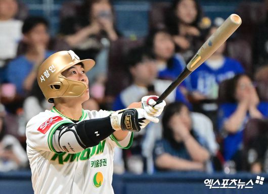 송성문은 2회말 선두타자 서유신이 삼진으로 물러난 이후 1사 주자 없는 상황 두 번째 타석에 들어섰다. 그는 이번엔 원태인과 1-1 카운트 승부에서 바깥쪽 126km/h 체인지업을 공략했고, 이번엔 중앙 담장을 훌쩍 넘기는 솔로 홈런을 만들어냈다. 비거리 130m의 대형 홈런이었다.