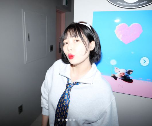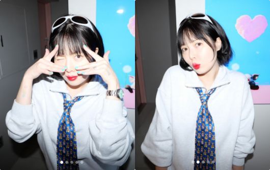 사진 속 현아는 맨투맨에 넥타이, 선글라스를 매치한 트렌디한 스타일링으로 포즈를 취하고 있다. 특히 최근 다이어트에 돌입한 만큼 더욱 날렵해진 얼굴선과 늘씬한 몸매가 눈길을 끈다.