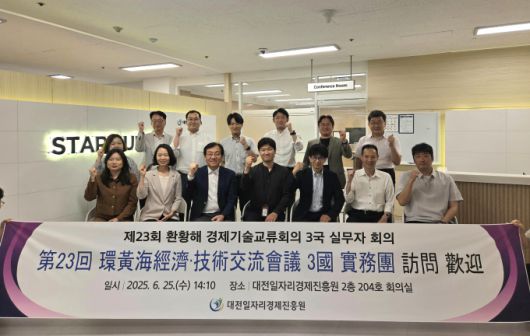 [대전=뉴스핌] 오영균 기자 = (재)대전일자리경제진흥원은 지난 25일 제23회 환황해경제·기술교류회의 추진과 관련해 한중일 3국 실무단이 진흥원 본원에 방문했다고 28일 밝혔다.