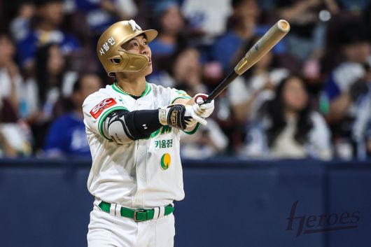 삼성 선발 원태인을 마주한 그는 1회말 첫 타석에서 시속 147㎞ 패스트볼을 공략해 우측 담장을 넘기는 솔로포를 장식했다. 1회 리드오프 홈런은 송성문 개인 3번째이자 올 시즌 리그 9번째 기록이다.