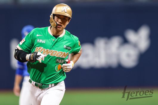 5회말에도 마운드에 오른 원태인은 송성문에게 선두타자 안타를 맞았다. 이어진 임지열의 타구 3루수 양도근의 호수비로 선행 주자를 지웠지만, 이후 최주환의 안타, 이주형의 땅볼, 주성원의 몸에 맞는 볼로 2사 만루가 만들어졌다.