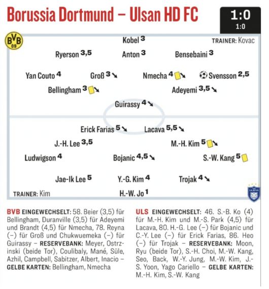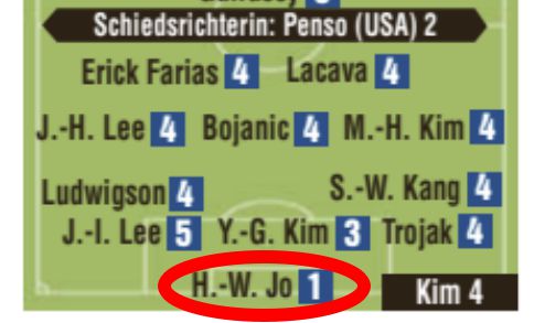 독일 유력지 '빌트' 역시 두 팀 선수들 중 조현우에게 유일하게 1점을 매기면서 그의 신들린 듯한 활약에 동의했다. 베테랑 수비수 김영권이 3점을 얻었고 다른 울산 선수들은 4~5점이었다.