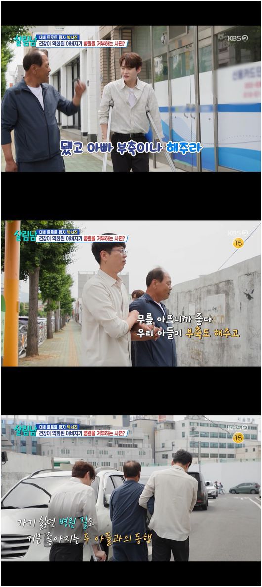 아버지는 “그런 다리를 하고 무슨 행사를 한다고, 아빠는 그것도 몰랐다”라며 한탄했다. 그러나 박서진은 “연세 드셔서 아빠 다리가 안 좋으시다. 요 근래 들어서 아빠 다치셨다는 이야기를 많이 듣는다”라며 아버지의 건강을 우선했다./osen_jin0310@osen.co.kr