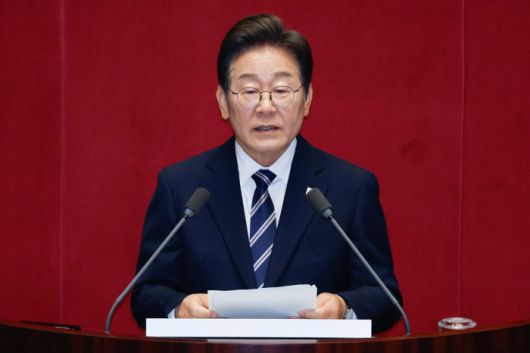 [서울=뉴스핌] 국회사진기자단 = 이재명 대통령이 26일 오전 서울 여의도 국회에서 열린 제426회국회(임시회) 제2차 본회의에서 2025년도 제2회 추가경정예산안에 대한 정부의 시정연설을 하고 있다. 2025.06.26 photo@newspim.com |