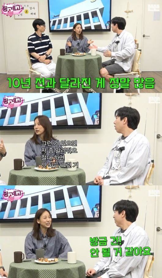 이어 "조심스럽게 예를 들면, 옛날에는 여자 가슴이 작은 것을 갖고도 놀리는 시절이었다. '너 B컵이야? C컵이야?' 막 그랬었다. 그런데 내가 (10년 공백기를 갖고 나서) 어디 가가지고 (옛날 예능처럼) '어? A컵 같은데?' 이런 농담을 하면 어떡하나 싶은 것이다"라며 걱정했다.