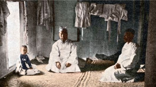 1895년 친일파 관료들 단체 사진. 일본군이 랴오둥반도를 점령하자, 조선의 친일파 대신들이 일본의 승리를 축하하러 왔다. |