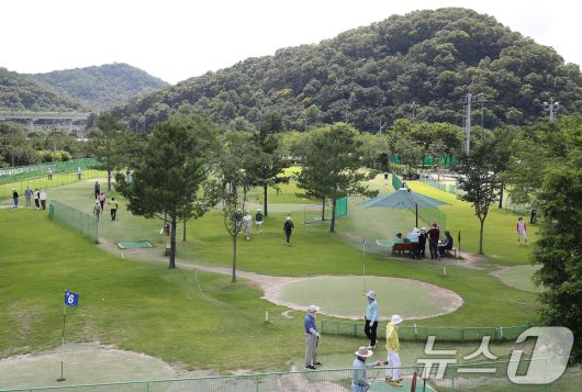 장맛비가 주춤한 25일 대구 수성구 팔현파크골프장을 찾은 동호인들이 파크골프를 즐기고 있다. 2025.6.25/뉴스1 ⓒ News1 공정식 기자 |