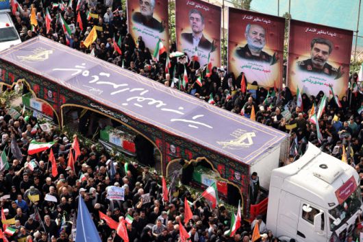 이날 로이터통신에 따르면 호세인 살라미 이란 혁명수비대(IRGC) 총사령관, 모하마드 바게리 이란군 참모총장 등 대상자들의 관은 사진과 국기로 장식돼 테헤란 혁명 광장에서 아자디 광장으로 운구됐다. 군중들은 국기를 흔들었으며, 일부는 축원의 의미로 손을 뻗어 관을 쓰다듬었으며 꽃잎을 던지기도 했다. 운구 행렬을 뒤따른 조문객들은 “미국에 죽음을”, “이스라엘에 죽음을”이라는 구호를 외쳤다.