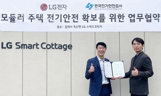 LG전자는 최근 전라북도 김제에 있는 LG 스마트코티지에서 한국전기안전공사와 ‘모듈러 주택 전기안전 확보’를 위한 업무협약(MOU)도 체결했다. 이번 협약으로 양사는 제품 설계 단계부터 설계도면 검토, 제조 현장검사 등을 통해 전기 안전 인증등급을 부여하는 ‘모듈러 주택 미리 안심 인증제도’ 신설에 협력한다.