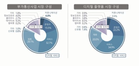 부가통신사업 시장과 디지털플랫폼 시장의 서비스 유형 구성./사진제공=과학기술정보통신부 |