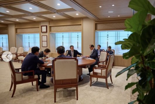 이재명 대통령과 대통령실의 김용범 정책실장, 국정과제·정책조정비서관에 내정된 김락중 전 경기도 정책보좌관이 회의하는 모습. / 사진=이재명 대통령 SNS(소셜미디어). |