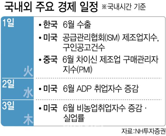 미국 주요 경제 지표 발표에 따른 금리 인하 기대감이 살아날 경우 투자심리가 한층 개선될 수 있다는 관측도 나온다. 이번 주에는 미국 공급관리협회(ISM) 제조업 지수(7월1일), 6월 미국 고용보고서(7월4일) 등의 발표를 앞두고 있는데, 경제 지표가 둔화할 경우 금리 인하 가능성에 무게가 실리면서 호재로 작용할 것이란 분석이다.