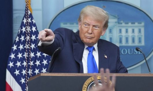 지난 27일(현지시각) 도널드 트럼프 미국 대통령이 워싱턴 백악관 브리핑룸에서 기자회견을 하는 중 질문할 기자를 지목하고 있다. AP 연합뉴스 |