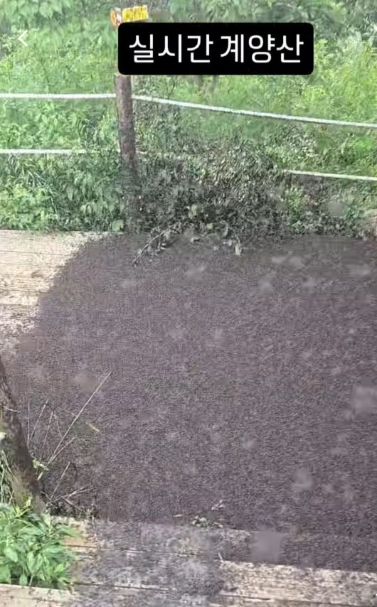 누리꾼들이 계양산에서 찍은 사진 등을 사회관계망서비스(SNS) 올린 것을 보면 땅바닥이 시커멀 정도로 많고, 걸어 다닐 수 없을 정도이다.