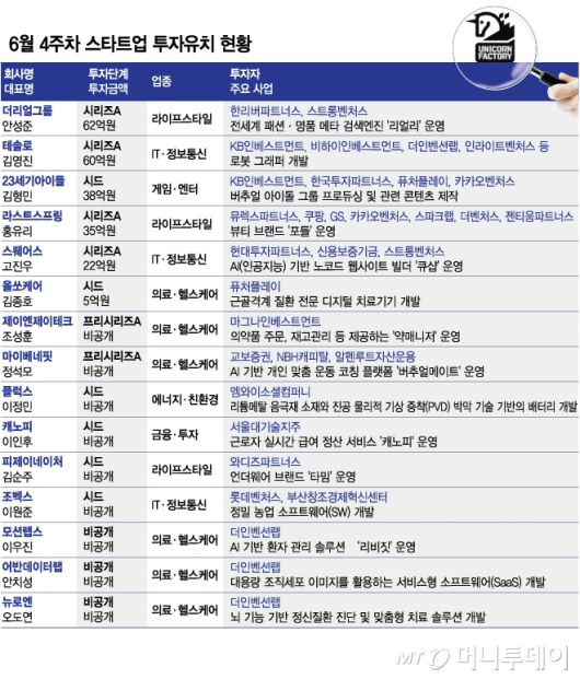 6월 4주차 스타트업 투자유치 현황/그래픽=김다나 |