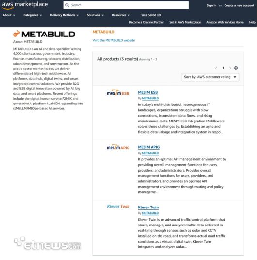 인공지능(AI)·연계 SW 전문 초월기업인 메타빌드(대표 조풍연)는 자사 대표 연계솔루션 MESIM AI연계 SW(APIG·ESB)를 세계 클라우드 시장 1위 기업인 AWS(Amazon Web Services)의 마켓플레이스에 등록했다고 밝혔다. 이를 계기로 메타빌드는 글로벌 클라우드 얼라언스를 강화해 글로벌 시장 공략에 적극 나설 방침이다.