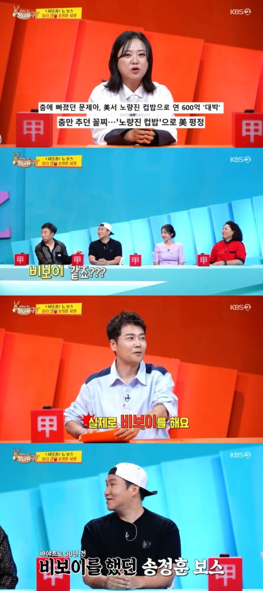 29일 오후 방송된 KBS2 예능 프로그램 ‘사장님 귀는 당나귀 귀’(이하 ‘사당귀’)에는 미국 유타에서 컵밥 신화를 세운 송정훈이 새로운 보스로 출연했다.