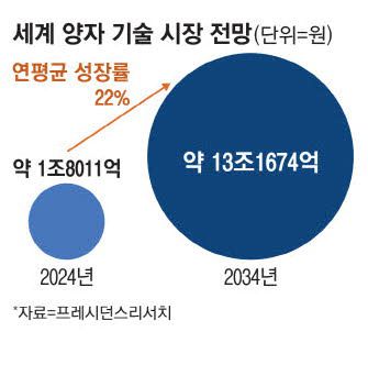 이에 따라 각국은 양자 기술 시장 선점을 놓고 각축전을 벌이고 있다. 한국도 적극적으로 양자 기술에 투자 중이다. 경제협력개발기구(OECD) 분석에 따르면 한국은 영국과 함께 국내총생산(GDP) 대비 양자 투자 규모에서 선두다. 지난 26일에도 대규모 프로젝트에 착수했다. 1000큐비트급 양자컴퓨터 개발 등에 8년간 6454억원을 투입하기로 했다.